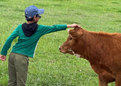 Giving tasty treats can contribute to the cow’s overall happiness and well-being. The studies suggest that friendly social interactions with cows are beneficial in lowering anxiety. The acute reduction in state anxiety lends support to the value of interacting with farm animals in the context of Green Care for people with mental health challenges.