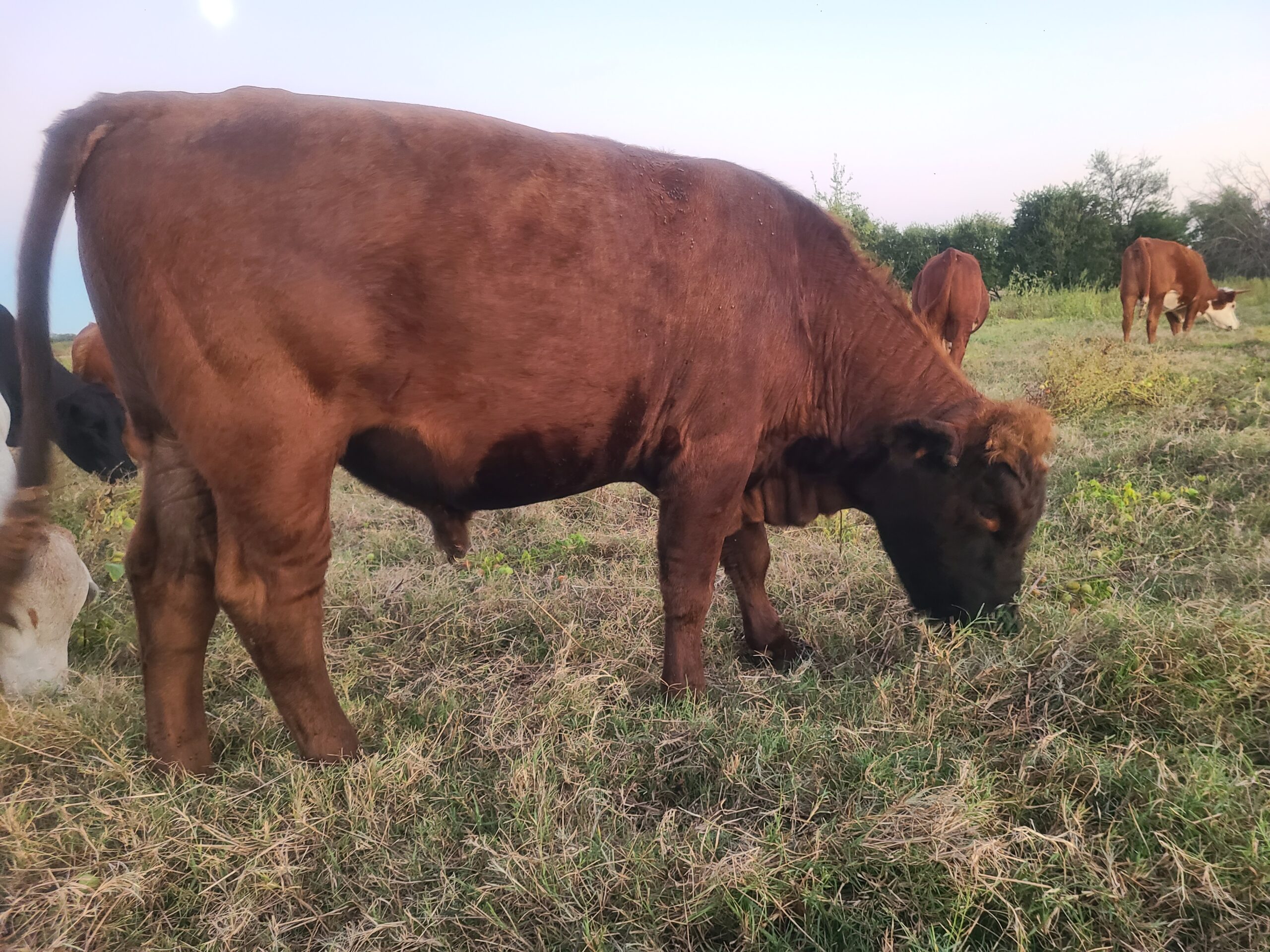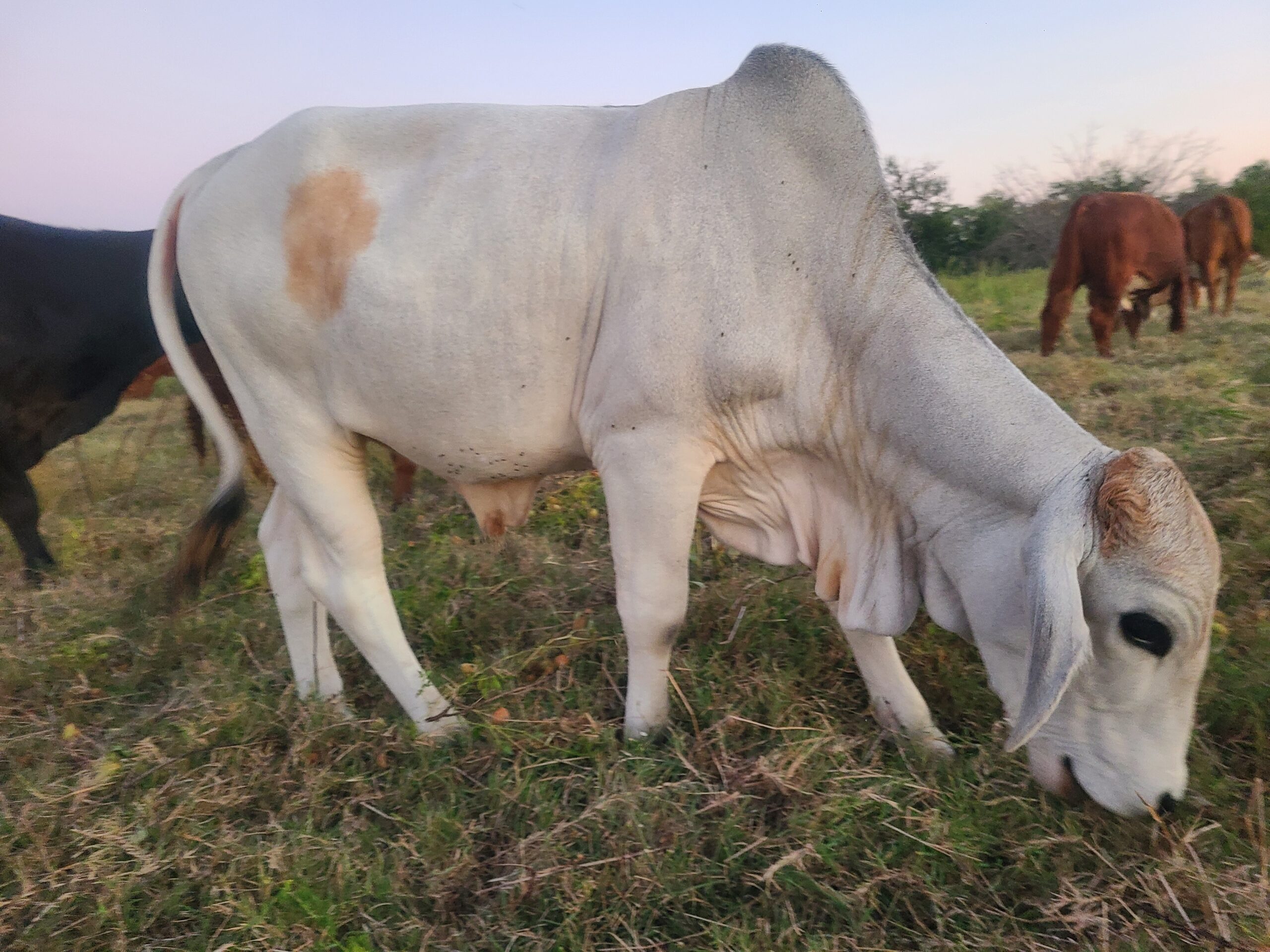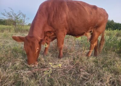 Laddu is a bull born to Gaurangi. He is the least skittish within the herd. Infact, he will come to you not for feed, but for good scratches. However, the way he lets know that he wants to be scratched is by headbutting. Hence, one needs to know Laddu well and be cautious when he is around.