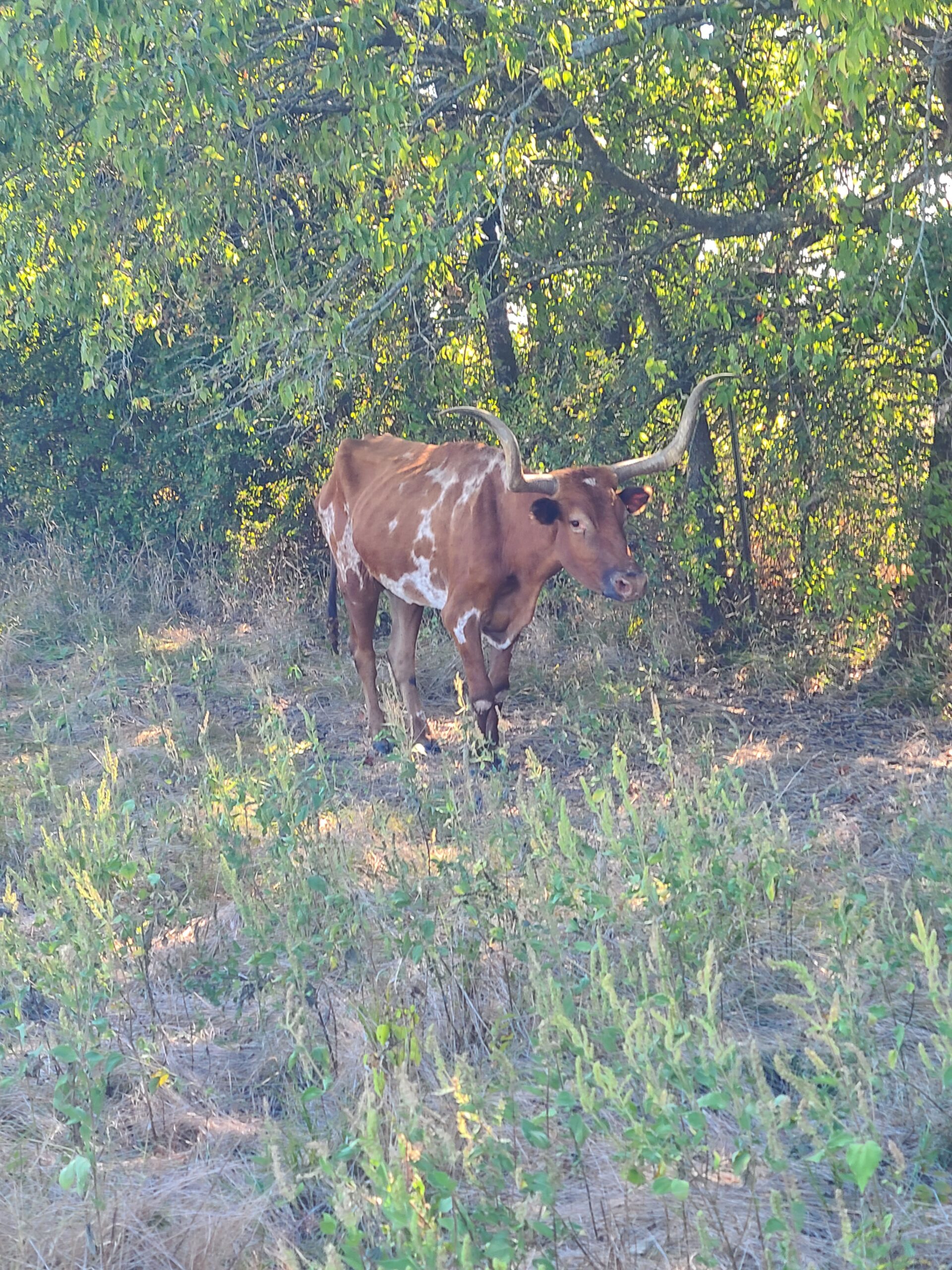 Laulyam is a loner, she is not the part of the herd. She was dropped by her owner as she was too old and fragile. She is perhaps the oldest cow in the sanctuary, maybe 12-15 years old. She is very reserved, and doesn’t like to be bothered at all. Sometimes, she is not seen for months. There is no match to the size of her horns.